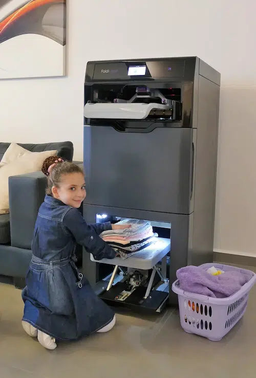 Foldimate ist die intelligente Lösung für perfekt gefaltete Wäsche.In wenigen Sekunden faltet das Gerät Hemden, T-Shirts und Hosen automatisch, sauber und gleichmäßig.Sparen Sie Zeit, reduzieren Sie Stress und genießen Sie mehr Ordnung im Alltag.